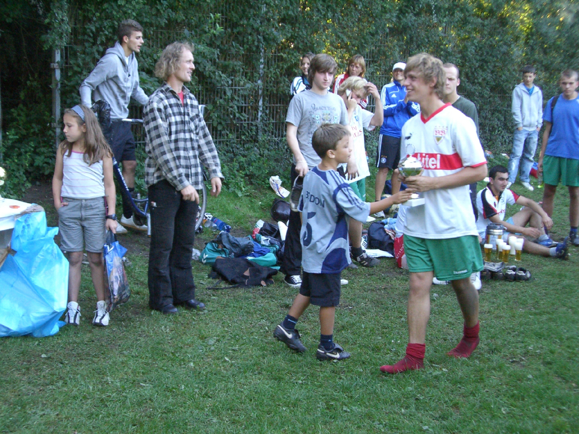 In diesem Jahr kam uns die Idee einmal selber ein Turnier auf unserem Bolzplatz in Siems auszurichten. Wir legten den Termin fest und versuchten bis dahin auch einige Mannschaften einzuladen. Das Teilnehmerfeld belief sich dann auf 5 Teams. Gespielt wurde 1x 30 Minuten nach dem Motto jeder gegen jeden. Max und ich hatten eine eigene Mannschaft zusammengestellt, das ZOFF-Team, unsere Radio/Fanzine-Mannschaft. Da wir auch noch Micha Hagi bei uns mitspielen ließen, sorgte dies natürlich für berechtigten Unmut der Schwarz-Weiss Grund Mannschaft. Klarer Favorit schon vorher und auch 1ter Gewinner wurden unsere Bosnischen Freunde FC Jorgovan aus Bosnien, da dem Zoff-Team im letzten Spiel gegen die Handballer Rangenberg die Luft ausging und sie mit 0:5 verloren! Das Turnier hatte allen beteiligten Spaß gemacht und sollte im nächsten Jahr fortgesetzt werden.